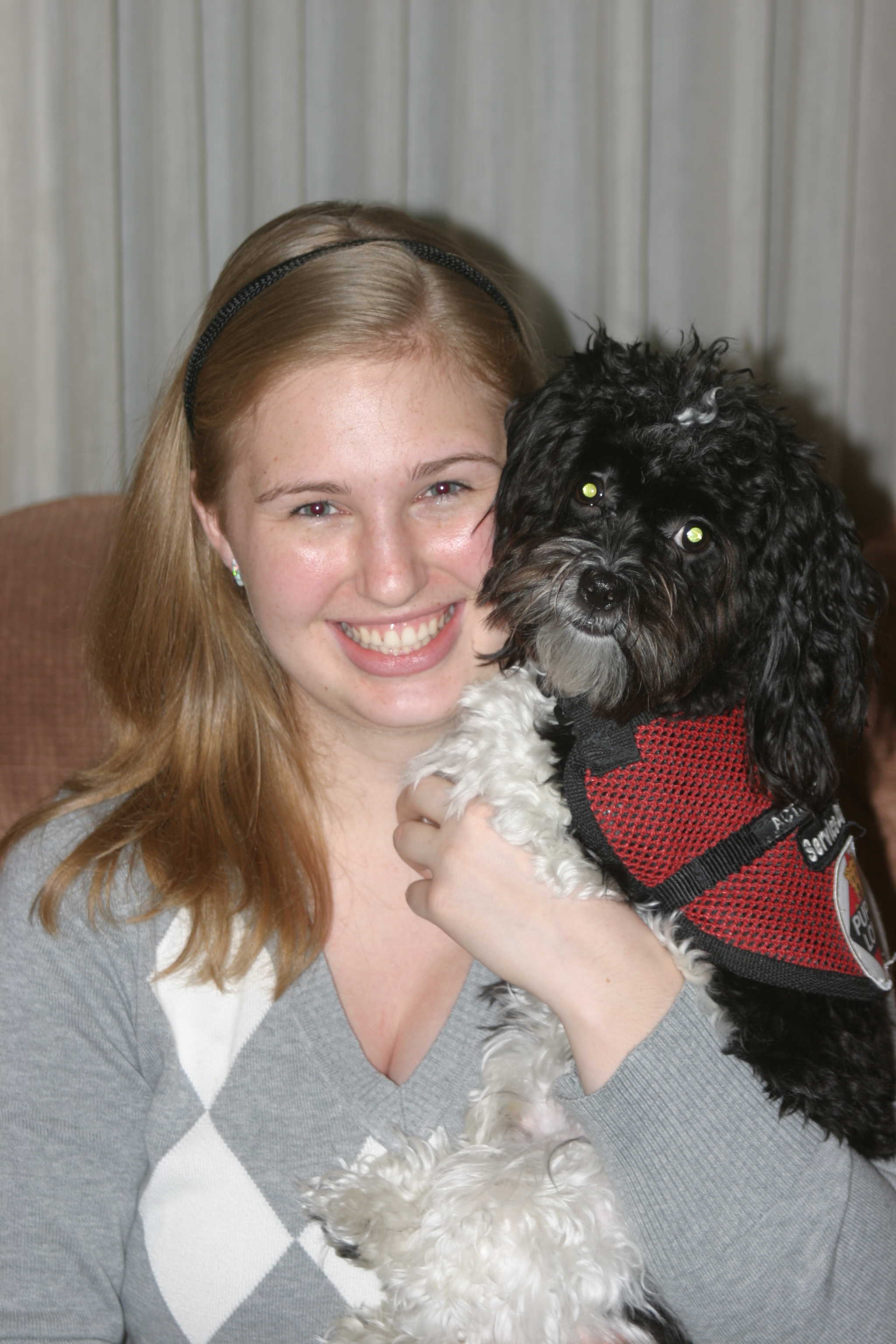My family stays in contact with Puppy Love as I learn to be Kirsten's service dog to the best of my abilities. They originally purchased me from Briarpatch Havanese to be Kirsten's alert dog. She has P.O.T.S. (Postural Orthostatic Tachycardia Syndrome). She developed P.O.T.S. in 7th grade but became most ill at age 15. She has been homebound from school for one year now. Life changed much for Kirsten when this happened, including much loneliness being away from her friends. That's where I came in.
